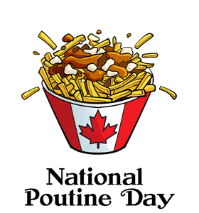 National Poutine Day celebrates the uniquely Canadian dish of poutine. The culinary creation comprises crispy french fries, topped with cheese curds and drenched in a flavourful gravy. This day unites Canadians in appreciation for the dish and its cultural significance, while also acknowledging its evolution from the original version to diverse modern adaptations and varieties that incorporate a range of ingredients.